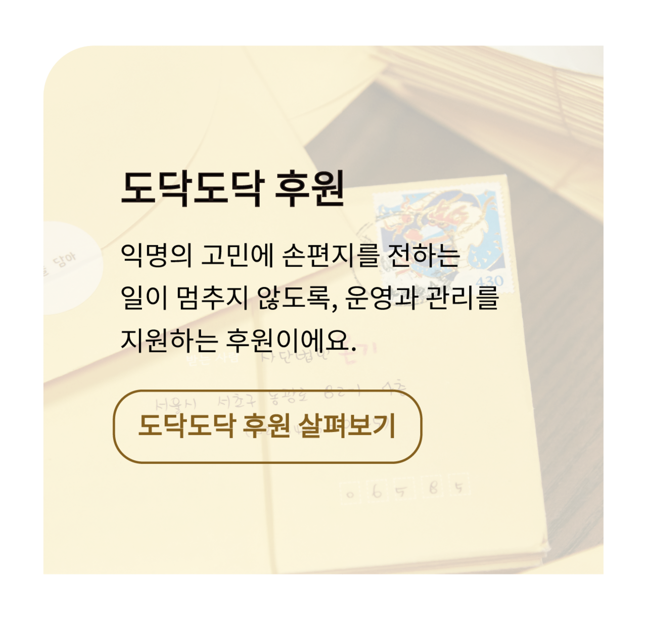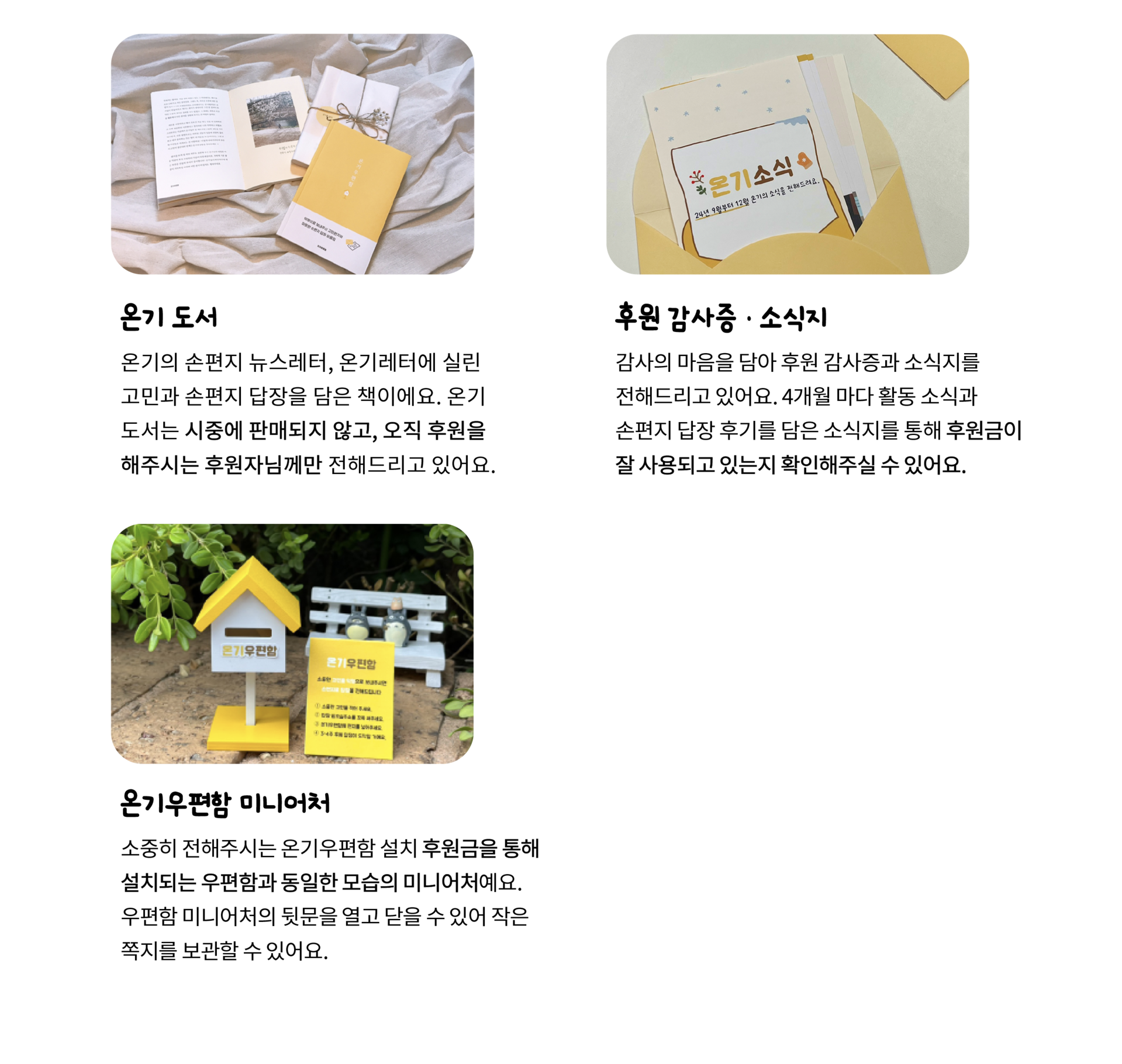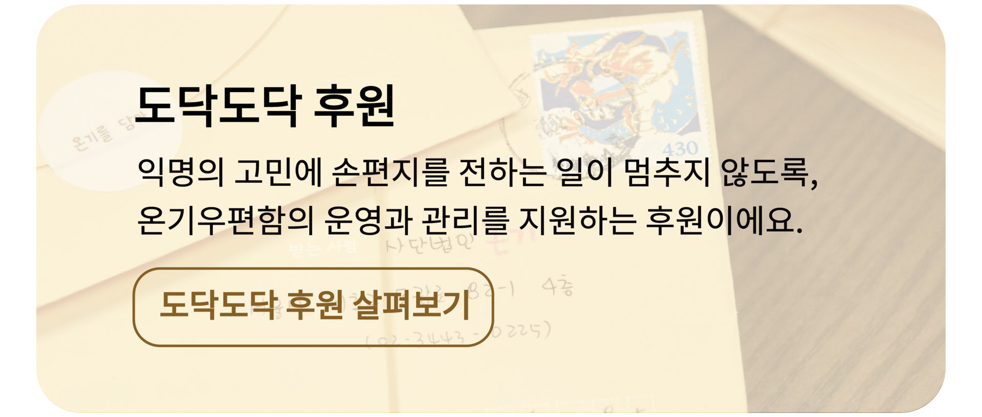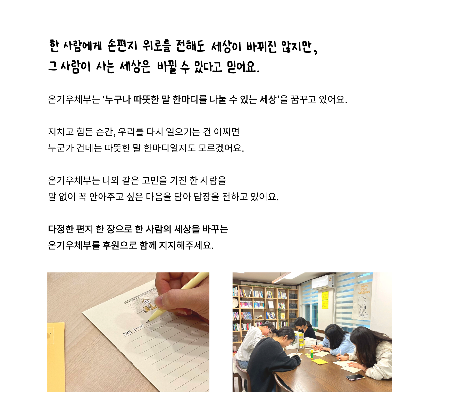 온기에는 익명의 고민에 손편지 답장을 전하는 일을 멈추지 않을 수 있는 큰 힘이 되어요.