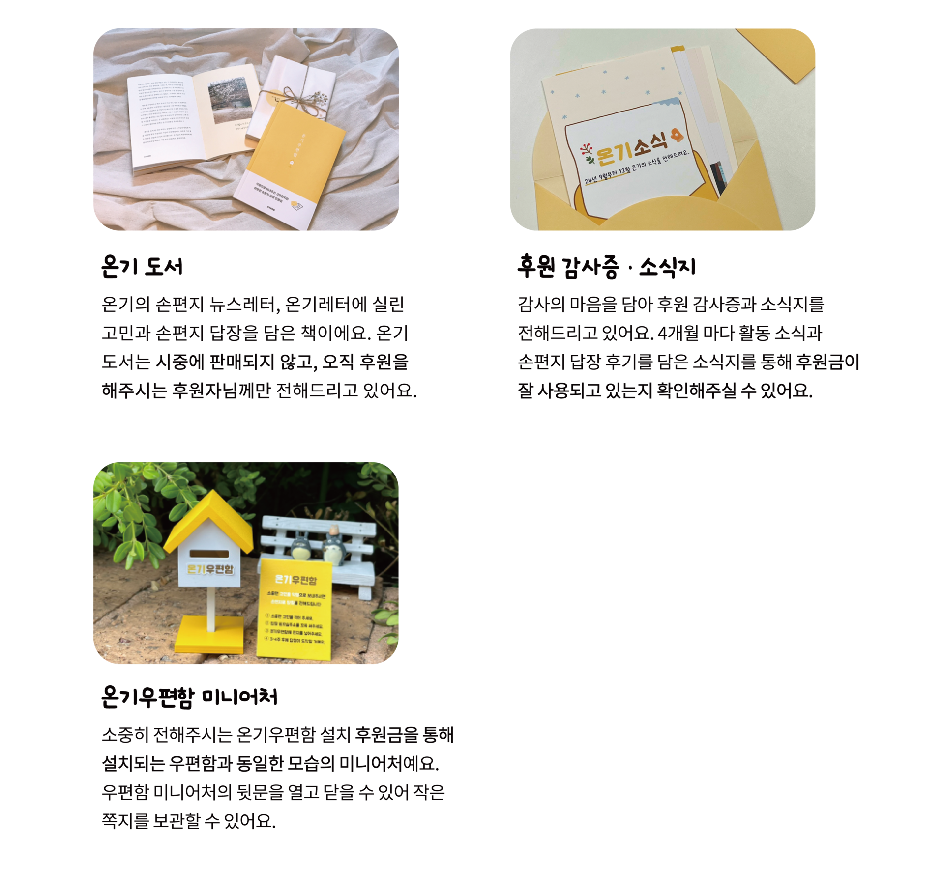 온기에는 익명의 고민에 손편지 답장을 전하는 일을 멈추지 않을 수 있는 큰 힘이 되어요.