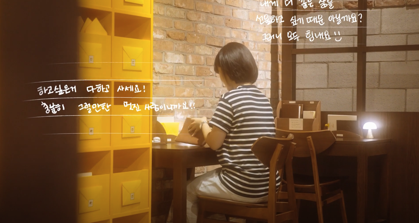 CJ CGV와 함께 여의도 IFC몰 CGV에서 '온기우체국' 팝업을 운영했어요. 극장 내에 고민편지를 접수하는 우체국 컨셉의 공간을 설치해, 팝업에 방문한 사회구성원이 고민을 작성하면 4주 뒤 손편지 답장을 받아볼 수 있도록 구성했어요.